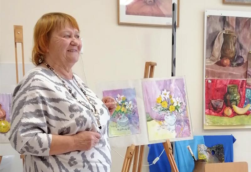 В завершении мероприятия к художникам присоединились юные писатели – участники литературного направления проекта. Для них методист Учебно-методического центра по художественному образованию и завуч ДХШ г. Черкесска П.И. Маркова провела экскурсию по школе, в ходе которой ученики познакомились с несколькими тематическими экспозициями.